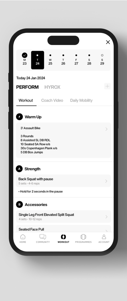 Our coaches guide you through every step of your workouts with notes, workout walk-throughs, and exercise videos.